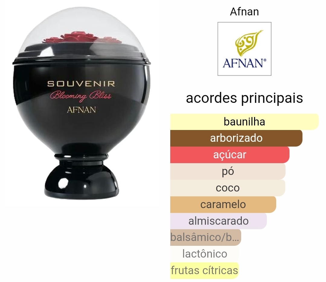 Souvenir Blooming Bliss de Afnan é uma fragrância oriental de baunilha para mulheres.