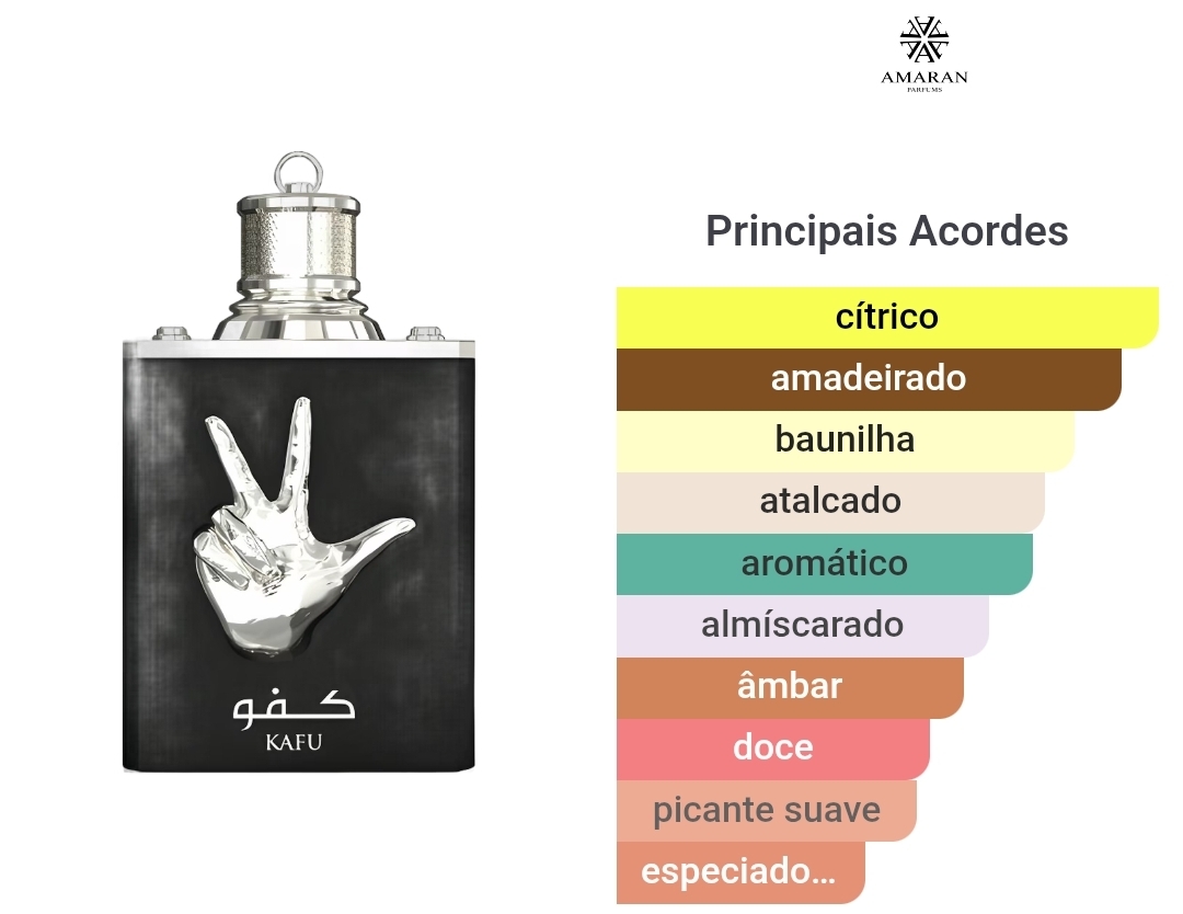 O Kafu Amaran é um perfume árabe masculino elegante e moderno, ideal para quem procura uma fragrância fresca com um toque cremoso e envolvente.