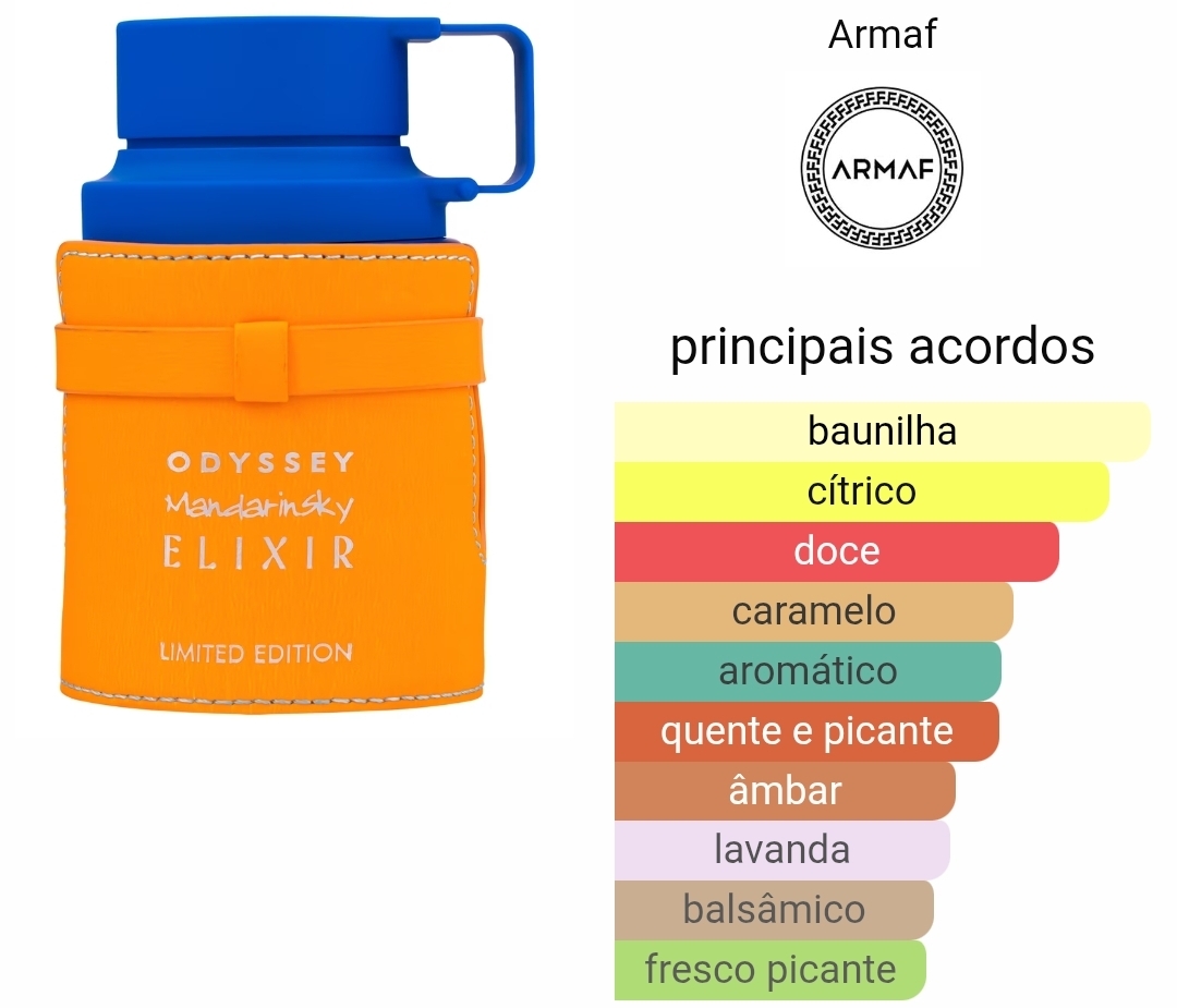 Odyssey Mandarin Sky Elixir da Armaf é uma fragrância oriental amadeirada unisexo embora claramente direcionada ao público masculino.