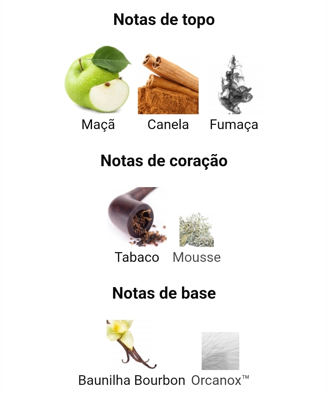 O perfumista que assina esta fragrância é Jean-Louis Sieuzac. As notas de topo são Maçã, Canela e Fumaça; as notas de coração são Tabaco e Musgo; as notas de fundo são Baunilha Bourbon e Orcanox™.