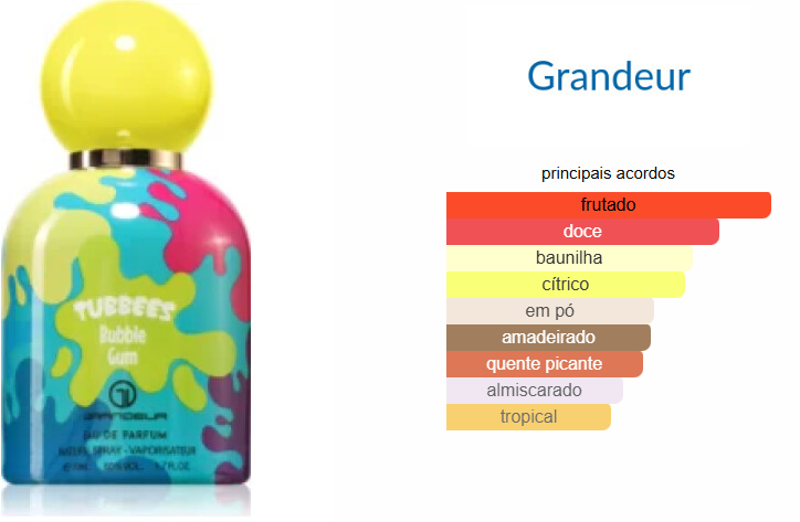 Vive uma explosão de doce nostalgia com Grandeur Tubbees Bubble Gum, um perfume unisexo que te transportará de volta aos teus dias de infância.