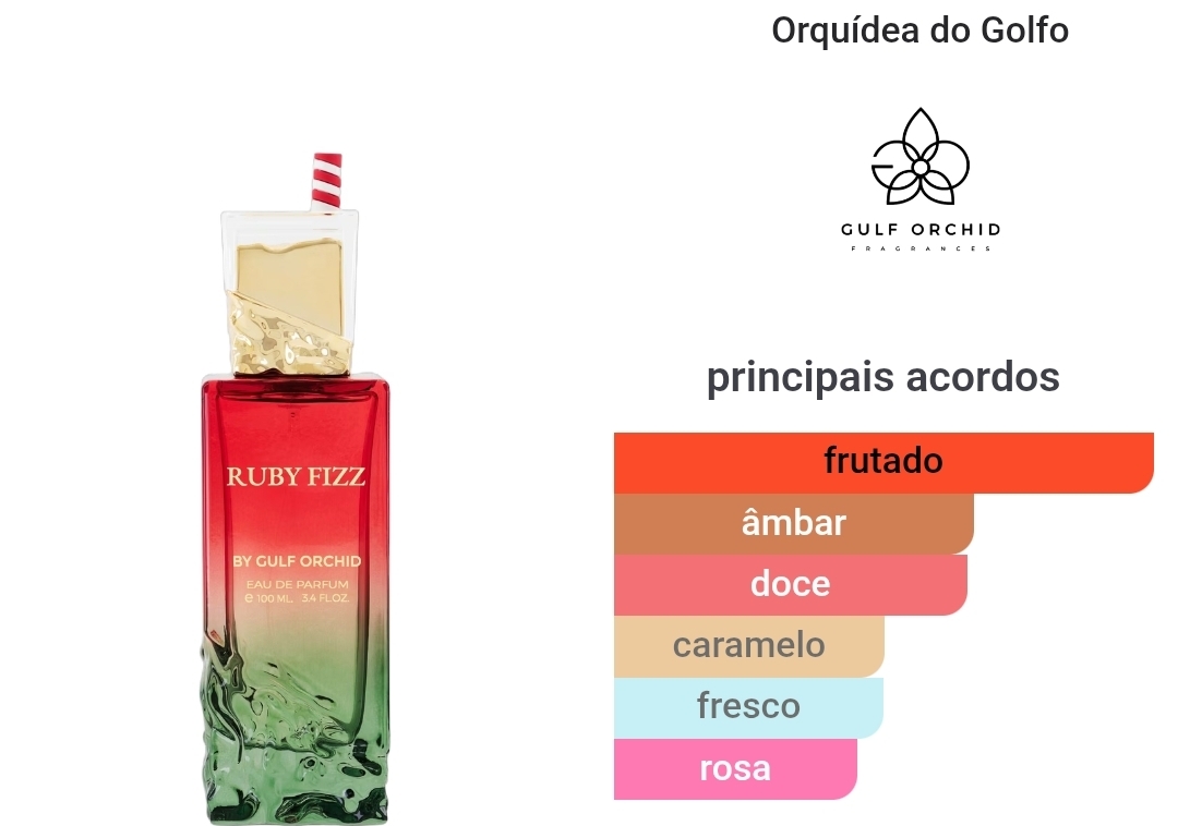 RUBY FIZZ, da Gulf Orchid , é uma fragrância floral frutada unisexo embora mais direcionado ao público feminino.