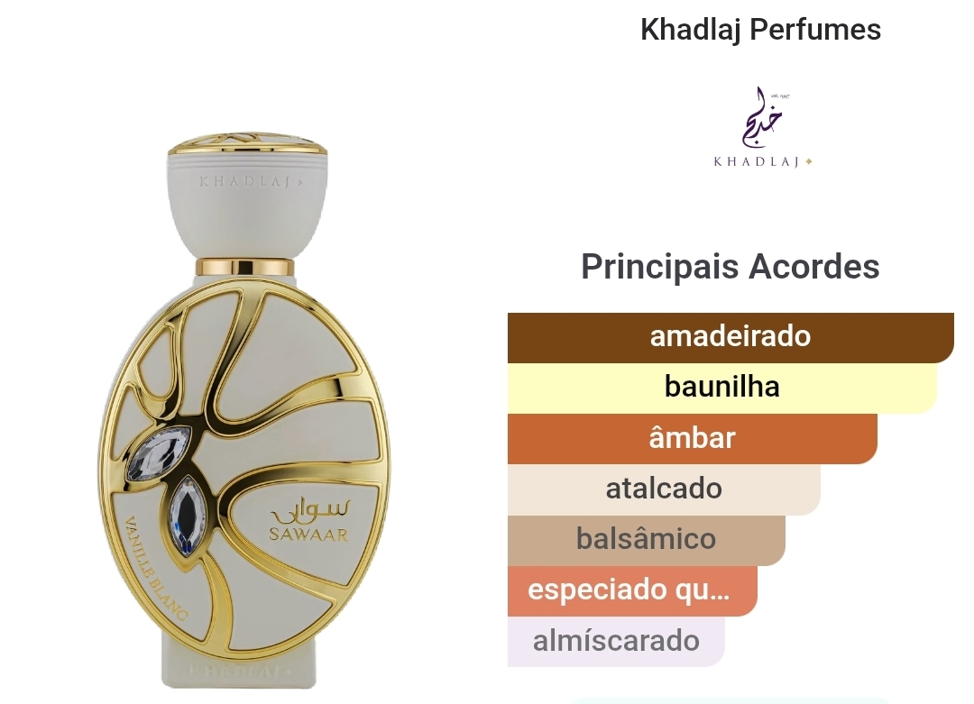Sawaar Vanille Blanc de Khadlaj Perfumes é um perfume Oriental Baunilha unisexo embora mais apreciado pelo público feminino.