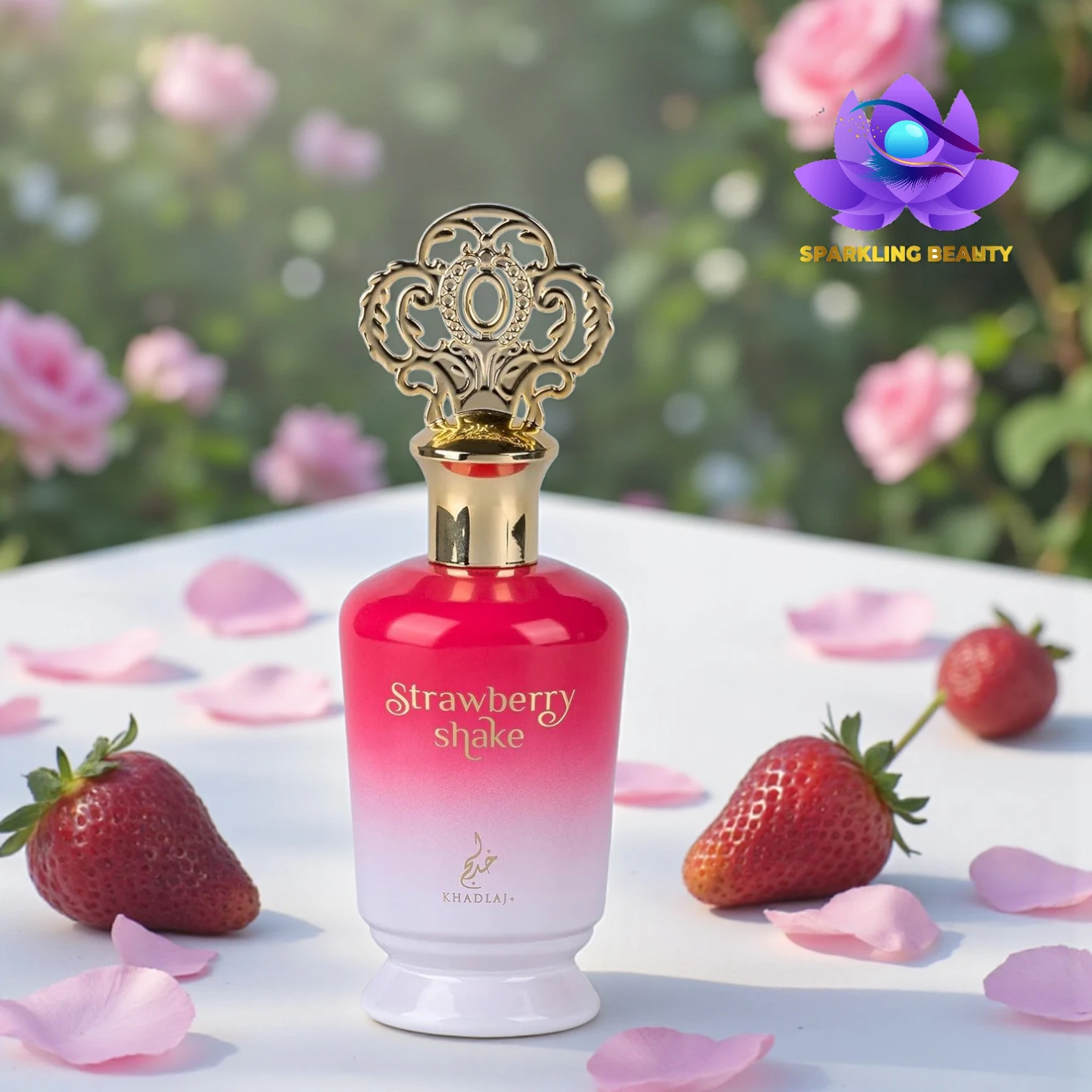 Khadlaj Strawberry Shake é uma fragrância deliciosamente divertida que proporciona uma doce fuga a cada borrifadela.
