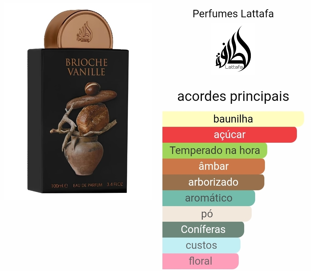 Brioche Vanille, da Lattafa Perfumes, é uma fragrância oriental baunilha para mulheres e homens. É um perfume novo, lançado em 2024. As notas de topo são brioche , bergamota e frésia; as notas de coração são abeto balsâmico e heliotrópio; e as notas de fundo são benjoim, baunilha e praliné