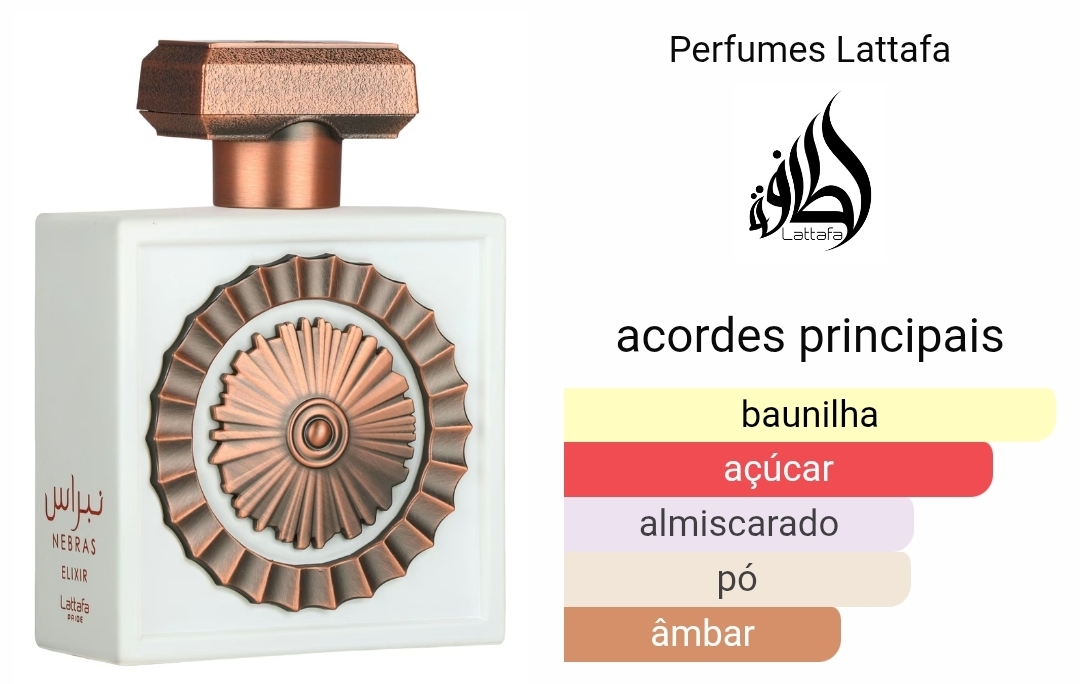 Nebras Elixir, da Lattafa Perfumes, é uma fragrância oriental de baunilha para homens e mulheres.