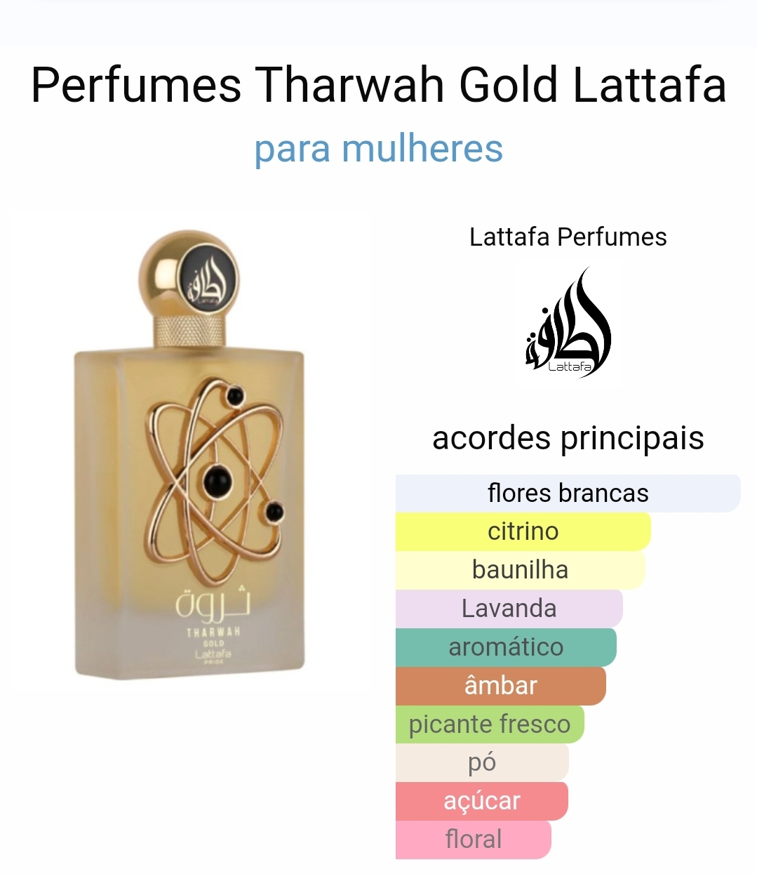 Tharwah Gold de Lattafa Perfumes é um perfume Âmbar Floral Feminino.