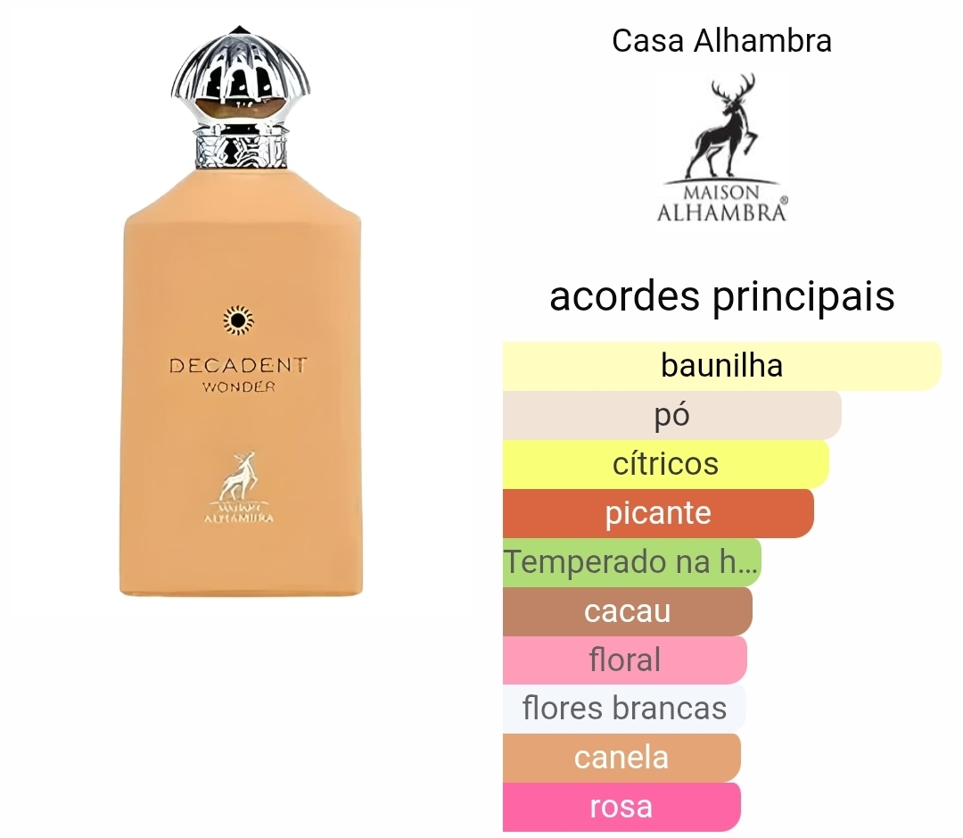 Decadent Wonder, da Maison Alhambra, é uma fragrância unisexo embora mais direcionada ao público feminino.