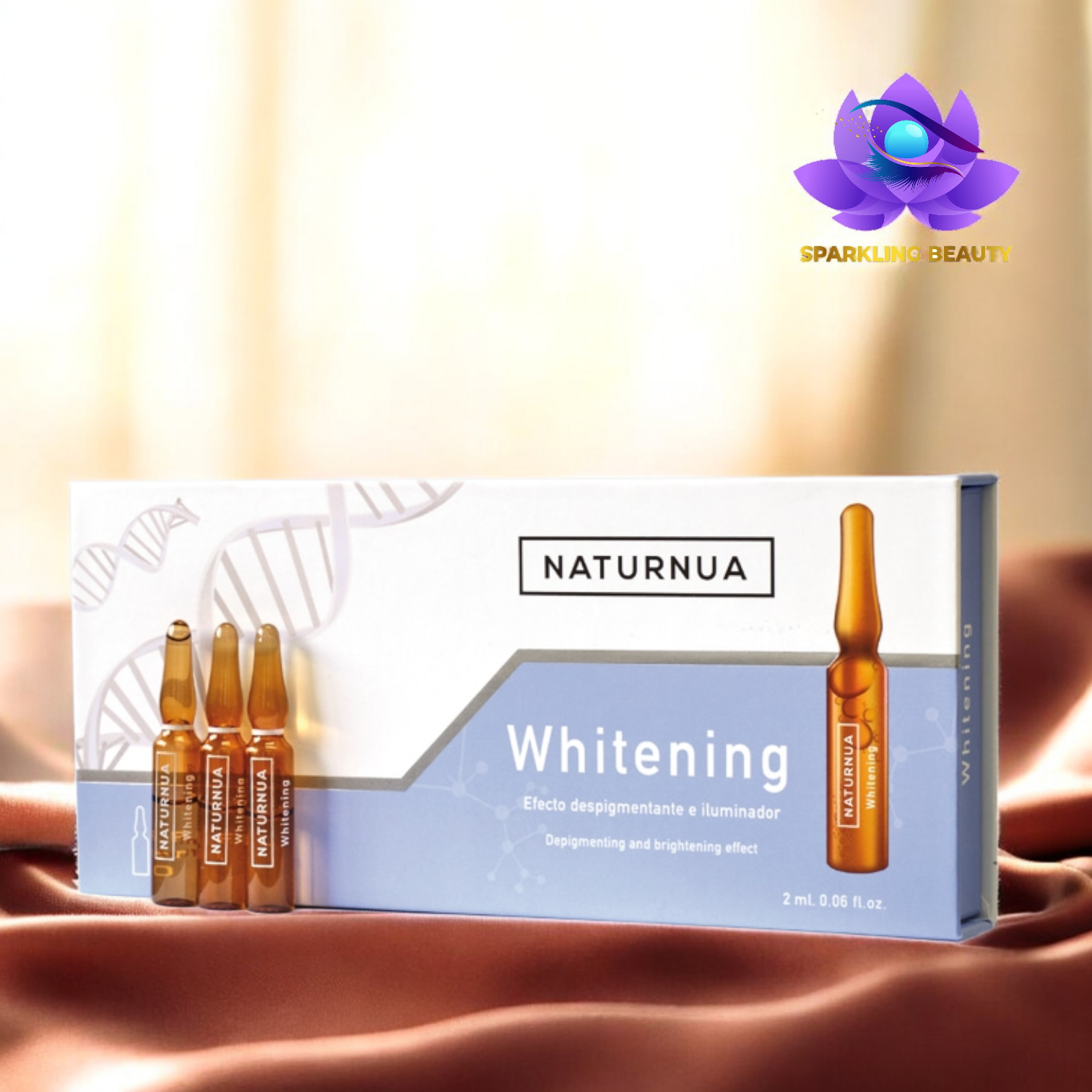 Ampolas estéreis formuladas com ativos despigmentantes e antioxidantes para tratar manchas escuras e uniformizar o tom da pele.