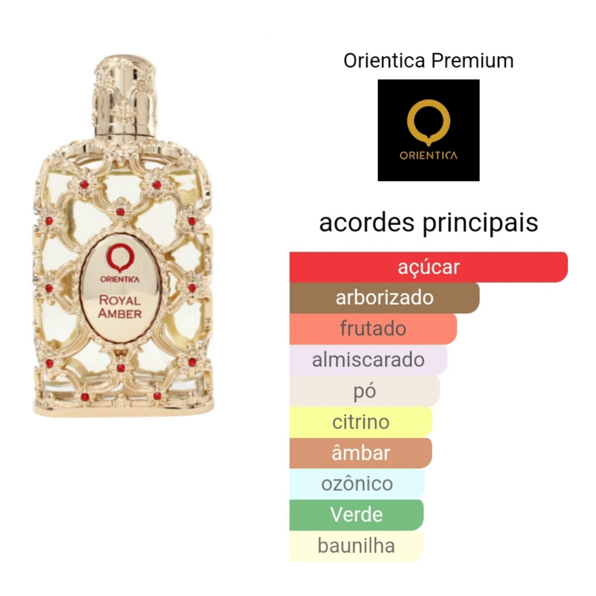 Royal Amber de Orientica Premium é um perfume unisexo embora mais apreciado pelo público feminino.