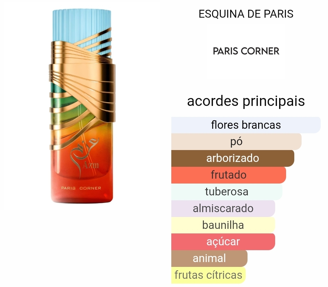 AZM by PARIS CORNER é uma fragrância Floral Frutada unisexo embora mais direcionada ao público feminino.