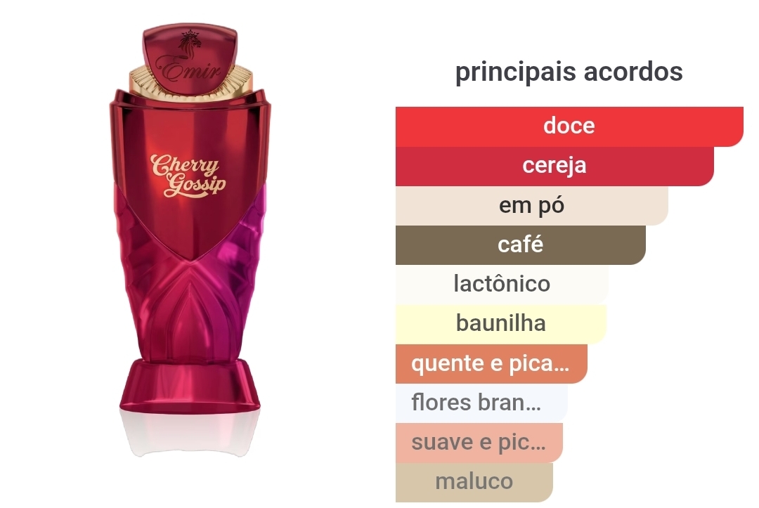 Cherry Gossip, da PARIS CORNER, é uma fragrância Oriental Baunilha unisexo embora claramente direcionada ao público feminino.