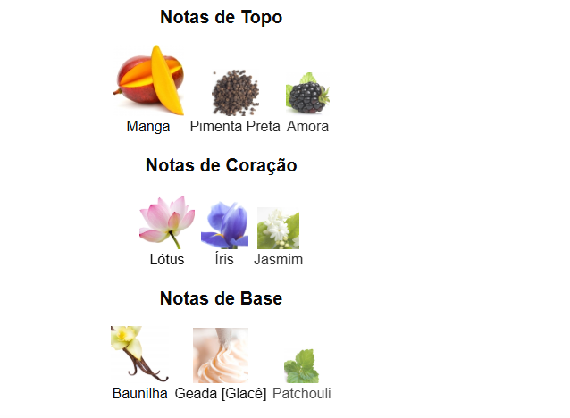 Notas de topo: Manga, Amora e Pimenta Preta.